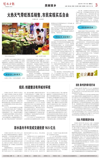“我们的西瓜精选自四川省绵阳市,平均每天每个销售点至少能售出1吨以上,且几乎每隔两三天就需从绵阳市补货。在江岸国际店,每日的销售量在1000斤左右;而河堡与黔龙店每日最高能售出一至两吨的西瓜。其中的大棚瓜卖得最好,售价为每斤1.5元,性价比极高,深受顾客喜爱。”闷龙果业负责人彭国友表示。