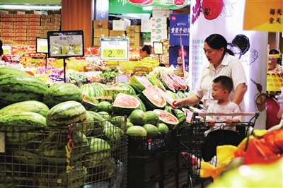 “今年西瓜便宜,近期我们的新疆西瓜1.29元一斤,早春红玉西瓜9.9元一个。为满足顾客的购买需求,我们一般三天补一次货,一次补货接近2吨,平均每天售卖1000至1500斤左右,节假日会卖更多一点。”佳慧超市工作人员彭冬梅介绍道。