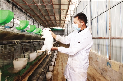 近年来,彭水以增加农民收入为核心,以壮大村级集体经济为突破口,全面推进乡村产业振兴。朗溪乡朗溪村通过肉兔养殖发展壮大村级集体经济,把肉兔养殖打造成增收致富的产业,让村民的致富道路越走越宽,越走越远。图为朗溪村6组肉兔养殖场,饲养员闵佳强正在检查兔笼里兔子的生长情况。