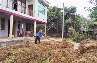 11月14日,天气渐凉,冬闲人不闲,鞍子镇大池村村民正抓紧时间对晾晒在院坝的荞子进行脱粒,力争颗粒归仓。据了解,荞子是我县特色农作物之一,可以制作成荞粑、荞面、荞汤圆。