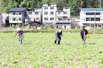 姚芝容介绍,目前村民们忙着给青菜头苗追施复合肥,这样有助于青菜头苗子根系更发达,叶子长得更好,青菜头长得更大。