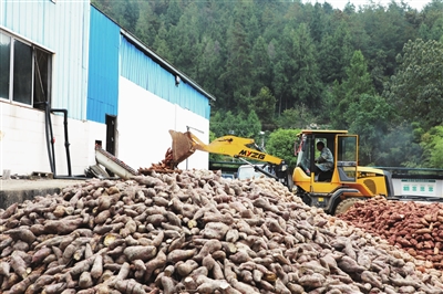 眼下,彭水红薯迎来丰收季,种植户们抢抓晴好天气,采取合理划区、分块采收、集中调配机械的模式,精准把握红薯品质优、出粉率高的时间,增加人员和机械设备进行全力抢收,确保红薯稳产增产。图为新田镇利源农业即将对收购的红薯进行加工。