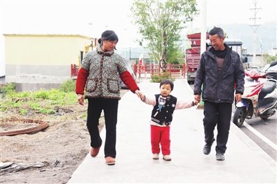 中午12时15分,刘远奎的丈夫王国琴开着三轮车到学校接小侄女放学。刚回到家,小侄女就偎在了刘远奎的怀里,过一会儿,又拉着刘远奎夫妻的手沿着人行道蹦蹦跳跳。