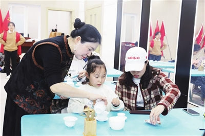 近日,15组亲子家庭在青少年活动中心识茶、学茶、品茶,感受茶文化的独特魅力,在轻松的氛围中加深了情感共鸣,增进了亲子感情。当天护航青少年健康成长“苗乡亲子养心营”——“共品茗·茶香溢”亲子茶艺体验活动圆满结束,也为彭水青少年活动中心2024年护航青少年健康成长“苗乡亲子养心营”系列活动画上了一个满意的句号。