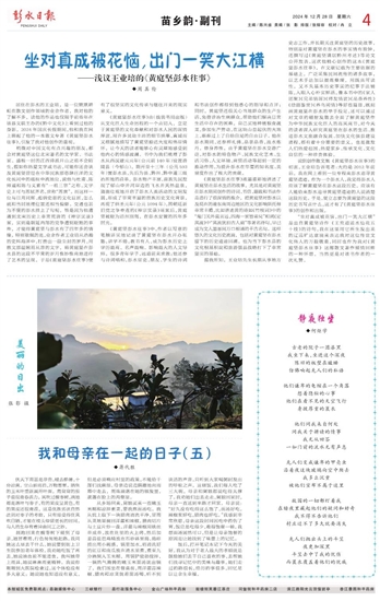 《黄庭坚彭水往事》中,作者以写意的笔触详实地记录了黄庭坚在彭水开办私塾,讲学不倦,教书育人,成为彭水历史上学历最高、名声最响、影响最大的人文导师。很多青年学子,远道前来求教;他还参与诗词唱和,彭水官吏、朋友、学生的诗词和书法创作都得到他悉心的指导和点评;同时,黄庭坚还很关心当地群众的生产生活,免费诊治生病群众,帮助他们解决日常生活中存在的困难。自己买地种植粮食蔬菜,参加生产劳动,在这块山峦起伏的大地上,渐渐过上了自给自足的自由日子。他在彭水期间,还参禅礼佛,品茶品香,汲水炼丹,修身养性。由于黄庭坚在彭水交游广泛,对彭水的特色物产、民族文化艺术、生活习俗、人文环境、商贸活动等起到一定的推动作用,为提升彭水在华夏的知名度、美誉度作出了极大的贡献。