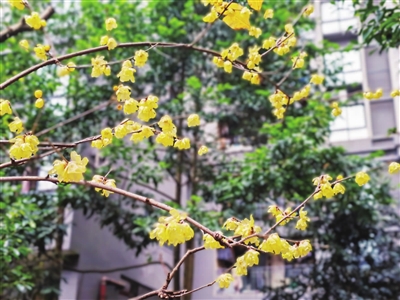 近段时间,县城公园和部分小区的腊梅竞相开放,路过可以闻到馥郁的香气。迎着阳光,一朵朵腊梅花犹如鸡油黄的琉璃一般镶嵌在树上,给冬日的县城增添了一抹亮色,吸引过往的市民纷纷打卡拍照。