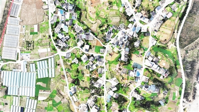 3月2日,保家镇三江口村,蓝天白云下,一片片绿油油的农田与错落有致的民居交相辉映,展现出一派生态宜居的乡村风貌。