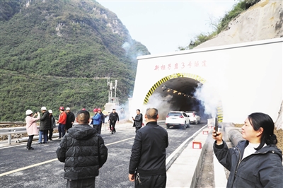 本报讯 (记者 李亚军 赵应波 陈宣霖) 经过半年的紧张建设,3月10日下午4点,总投资2900多万元的X014县道新柜子岩隧道建成通车,阻断一年多的交通恢复通行。