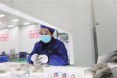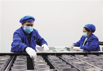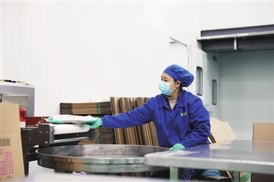 3月10日,走进重庆苗薯农业有限公司生产车间,机器轰鸣,生产线高速运转,只见工人们小心翼翼地将蒸煮好的粉饼摆放整齐,等待它们降温定型。随后,打包区的工人们将薯饼装入包装袋,封口、贴标、装箱,一气呵成,整个车间充满了忙碌而有序的氛围。