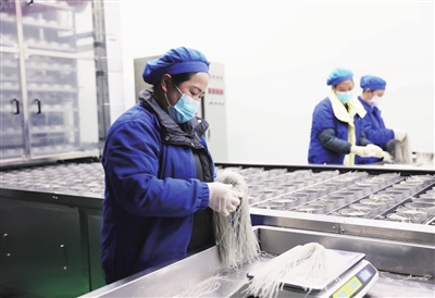 生产车间负责人宋海敏介绍,湿粉车间一共四条生产线,包括两条湿粉两条酸辣粉。两条湿粉生产线日产量共30吨,日产值约50万元。酸辣粉两条生产线日产量共30吨,日产值约170万元。