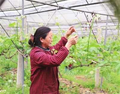 “这些多余的枝条会吸收营养,为了葡萄的产量就需要剪掉。”3组村民传容边说边剪枝,“每年农闲时都在这里干活,一天80元,工作8小时,加班还有加班工资,离家近还能照顾家里。”