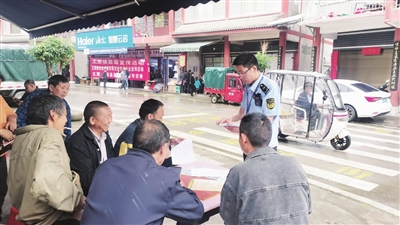 为提升村民防灾减灾意识和自救互救能力,5月14日,太原镇综合执法大队联合新时代文明实践中心、产业发展中心、村镇建设服务中心等多部门,开展了防灾减灾周主题文明实践活动。图为执法队员为村民讲解应急避险知识。