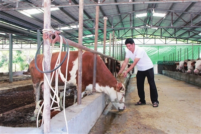近日,在芦塘乡坡坪村妙颜肉牛养殖基地内,村民正给牛投喂草料。基地以“妙颜牛”养殖为特色,在改善乡村产业结构、带动村民增收致富中发挥积极作用,成为乡村振兴的生动实践场景。